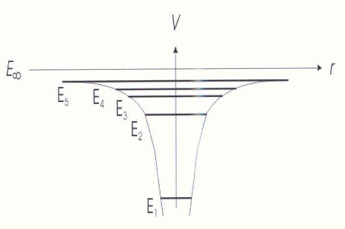 Insgesamt ergibt sich als Ergebnis der Rechnung eine Abhängigkeit der Pfeilniveaus und der zugehörigen dreidimensionalen Wellenfunktion von drei Quantenzahlen: E = En,l,m. |