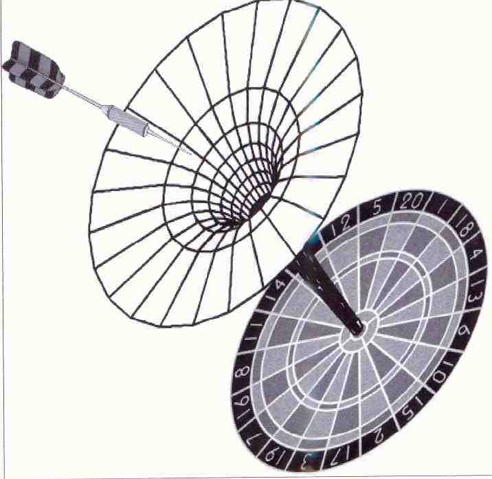 Die Wirkungsweise des DARTolisator2003 beruht auf einem grundlegenden Prinzip der Festkörperphysik, dem sogenannten "Potentialtopf". Erstmals ist es uns gelungen, ein Phänomenon der Quantenmechanik direkt in die Makrophysik umzusetzen und sofort Nutzen daraus zu ziehen: eine 100 % - in Worten: einhundertprozentige Trefferqoute das "Bulleye" betreffend. Generationen von Physikern scheiterten an diesem Problem, erst der Verzehr eines Kasten Branik an einem Montagabend führte die Lösung direkt vor Augen. Somit fand die Geburt der modernen Dartmechanik auf einem Balkon in Königs Wusterhausen, im Beisein der Gründungsmitglieder des "Stammtischverlag e.V.", statt. |